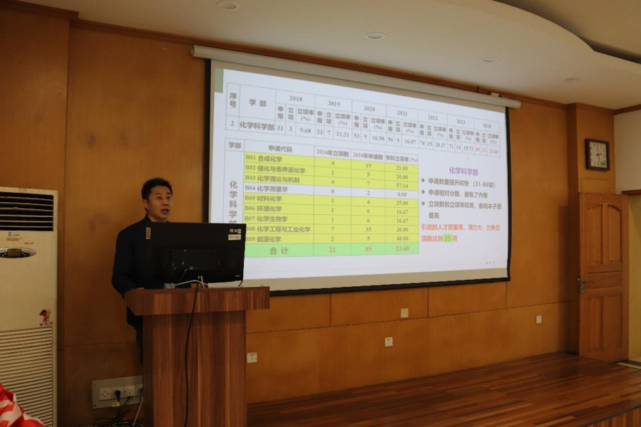 交流会上,科技处马猛涛副处长从近三年获批数量、基金类型、各21点游戏规则 成绩、申报学部分布等多个维度对21点游戏规则 的国家自然科学基金申报工作进行了深入剖析,并与同类高校进行了详细对比。报告显示,21点游戏规则今年国基金获批数量14项,位列全校前三,其中建筑工程系国基金7项,占21点游戏规则 获批数量的50%。报告不仅展示了我校近些年在基金申报方面取得的显著成绩,也指出了存在不足和努力方向,为今后申报工作提供了宝贵的经验和借鉴。