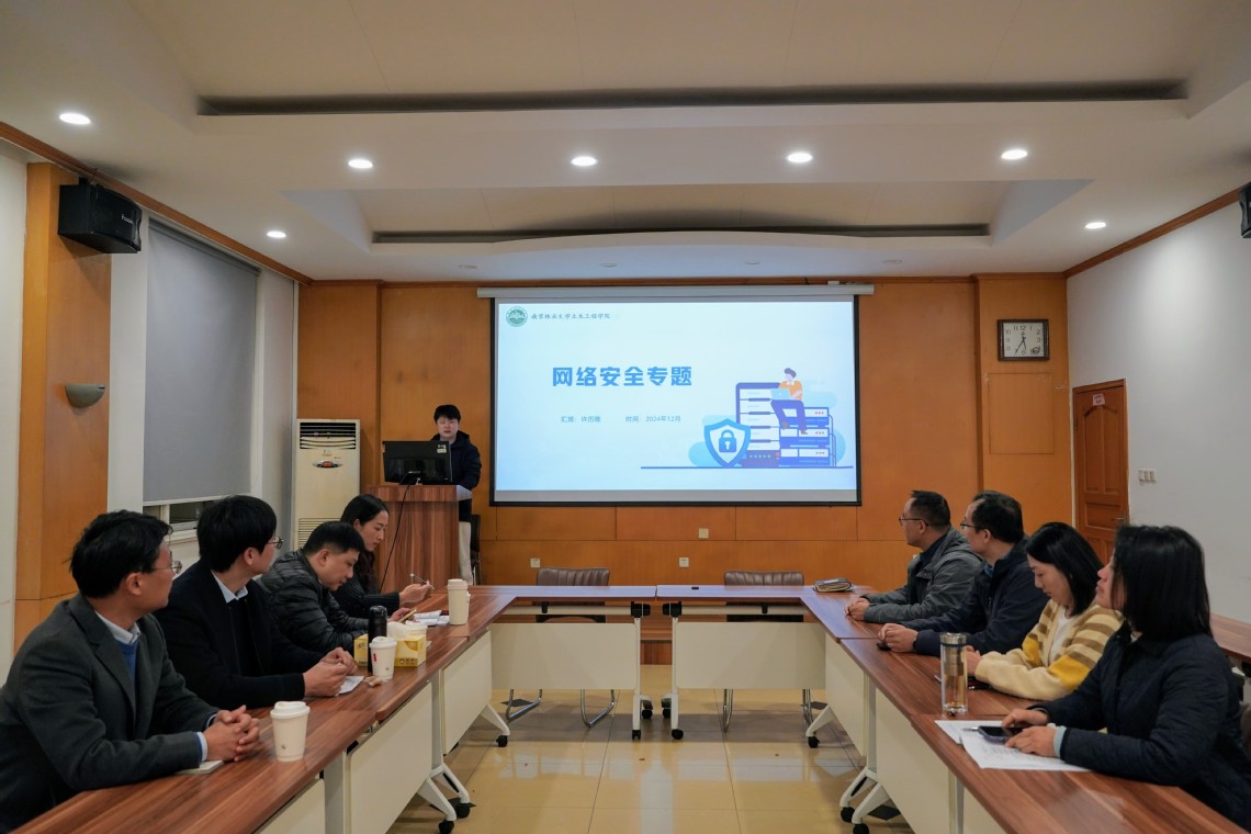 12月2日,21点游戏规则 在林机楼3324报告厅召开网络安全工作专题会,21点游戏规则 院领导、党委理论学习中心组成员、各系(室)中心主任代表参加了此次网络安全专题会。本次网络安全专题会由21点游戏规则 党委书记兼网络安全和信息化工作责任人王雪主持,并由21点游戏规则 网信工作联系人许历隆做专题汇报。