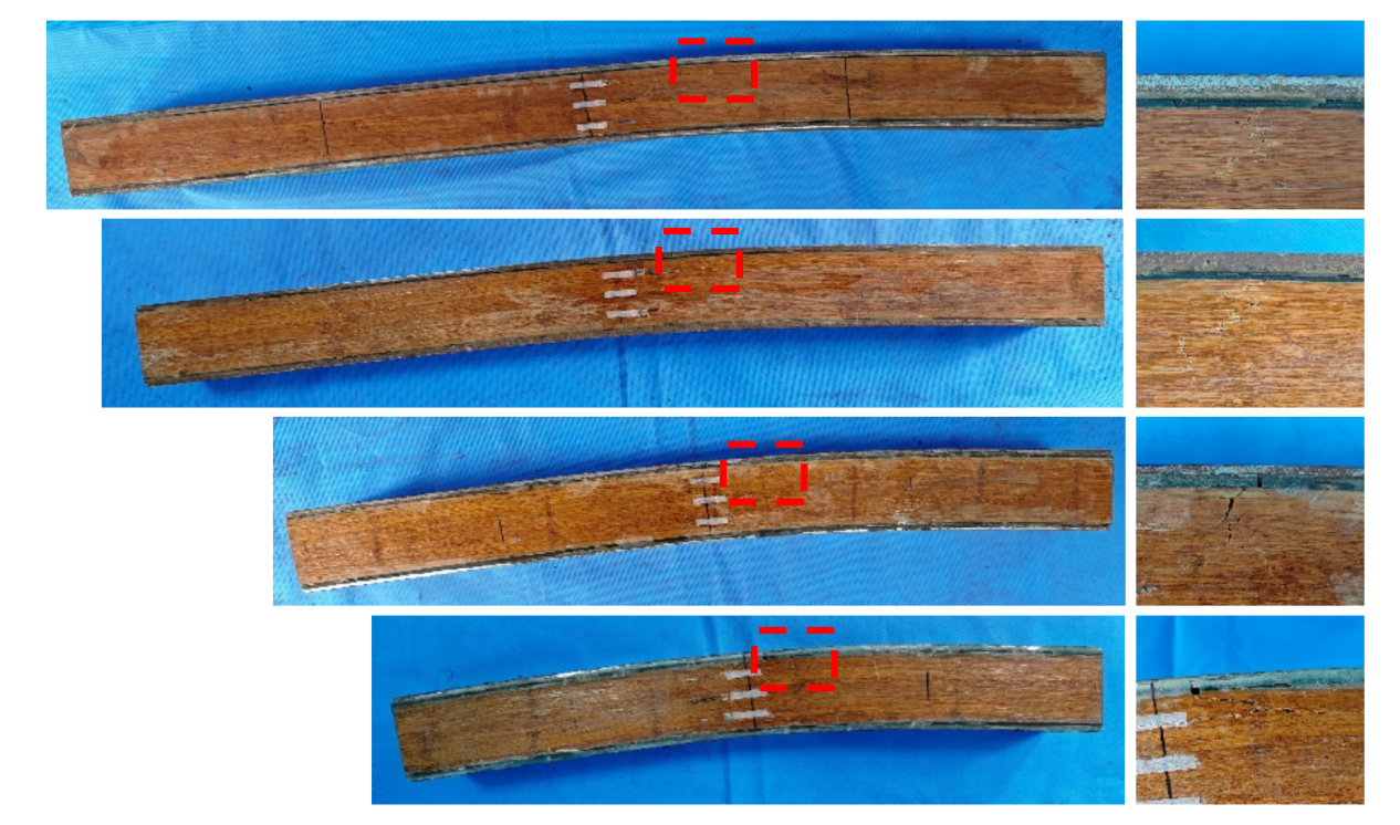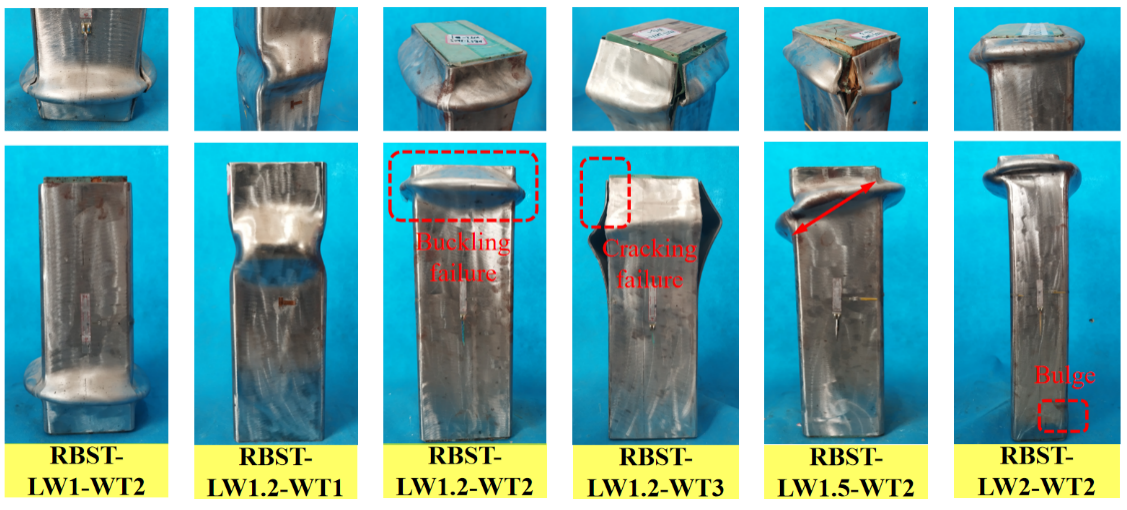 不同长细比型钢部分包裹重组竹柱破坏形态