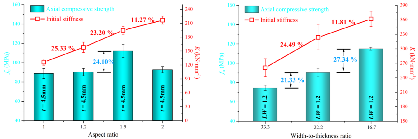 (a) 长宽比的影响 (b) 宽厚比的影响
