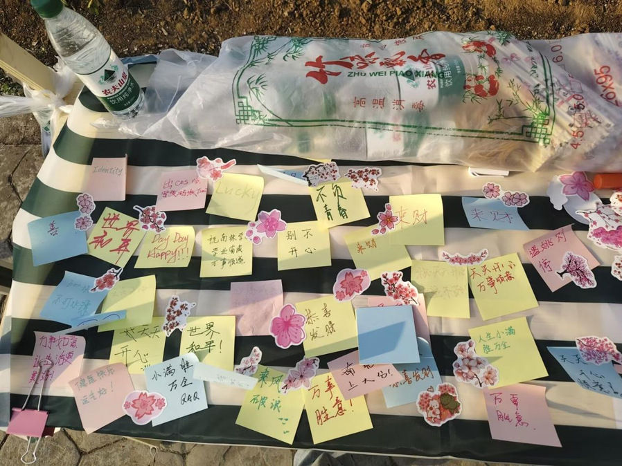 随着活动逐渐进入尾声,樱花树下摆满了承载着大家美好心愿的祈愿签。本次活动不仅让参与者留下了美好的回忆,更为春日的校园增添了一份诗意与温情!