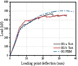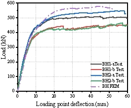图5 试验与模拟的荷载-挠度关系对比