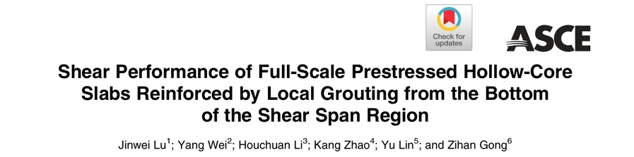 近日,21点游戏规则魏洋教授团队在美国土木工程师学会ASCE期刊《Journal of Bridge Engineering》上发表了预应力空心板桥梁抗剪加固研究成果(Shear Performance of Full-Scale Prestressed Hollow-Core Slabs Reinforced by Local Grouting from the Bottom of the Shear Span Region)。研究生陆金炜为第一作者,魏洋教授为通讯作者。