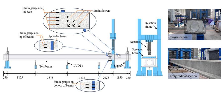 16m足尺预应力空心板抗剪试验装置与测点布置