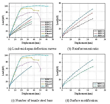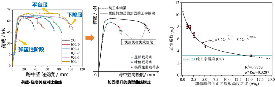 重组竹加劲肋(BSSs)加固钢梁的荷载-挠度关系曲线及延性提升预测