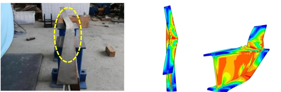 在竹材增强钢结构方面,论文提出了新型的重组竹加劲肋(BSSs)加固钢梁的方法,以用于对老旧钢结构加固,在避免传统焊接钢板加劲肋时所产生的残余应力的同时,具有更简单的构造与高效便捷的施工工艺。试验结果证实了,该方法实现了工字钢梁延性的大幅提升(47.27%~150.31%),有效改善了其横向弯扭屈曲的失稳行为(LTB);进一步建立了一系列对应于纯工字钢梁和 BSS 加固的工字钢梁的精细有限元模型 (FEM),捕获了研究实验中难以获得的不稳定区域的 Mises 应力分布,得到了良好的仿真结果。