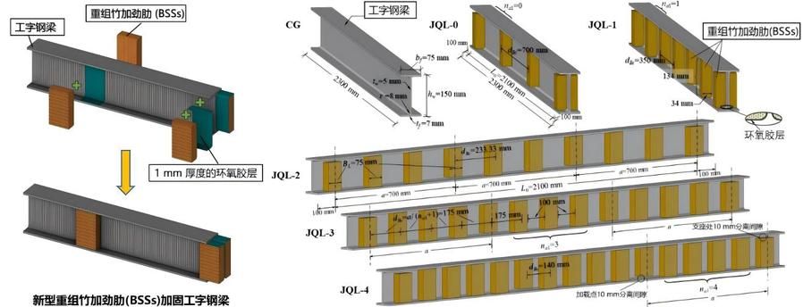 重组竹加劲肋(BSSs)加固钢结构梁概念