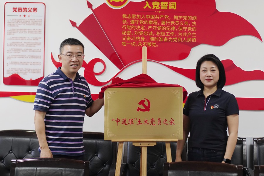 朱强与王雪共同为“中通服”土木党员之家揭牌