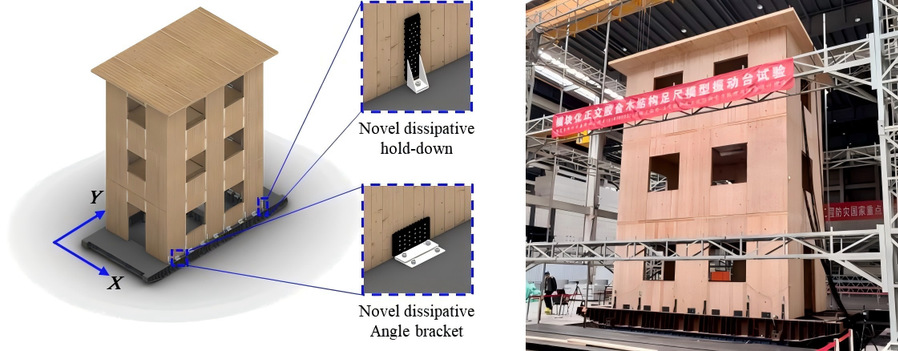 正交胶合木结构是近年来受全球范围关注的新型低碳结构体系之一,具有装配化程度高、抗侧力刚度大、抗火性能好等诸多优势,但现阶段常用的金属抗剪和金属抗拉连接件存在损伤模式不合理、耗能与变形能力不足等提升空间,限制了其在高烈度区的推广应用。