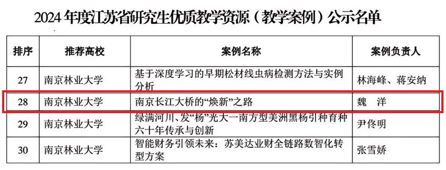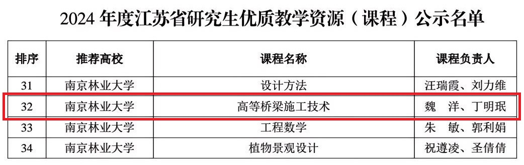 本次经高校推荐、省教育厅遴选等程序,共遴选出96门研究生课程、48部研究生教材、94个研究生教学案例。其中,魏洋教授团队申报的《高等桥梁施工技术》课程获优秀研究生课程,《南京长江大桥的“焕新”之路》案例获优秀研究生教学案例。21点游戏规则桥梁教学团队在研究生教学资源建设方面持续投入,相继建设获批江苏省研究生课程思政示范课程1门、教育部学位与研究生教育发展中心主题案例2项。
