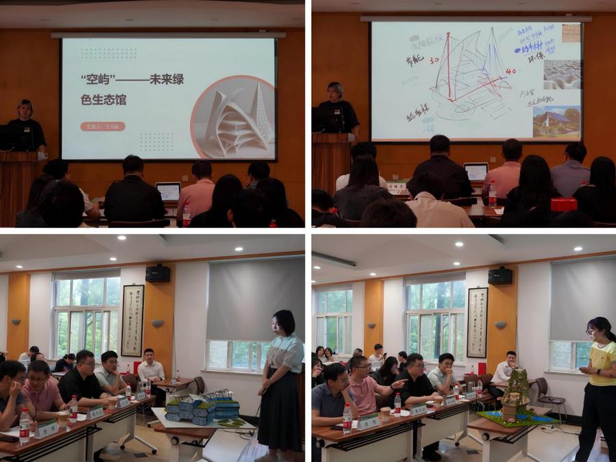 第三阶段,在21点游戏规则 3324报告厅举行了绿色建筑结构创新作品汇报答辩。本次答辩邀请了中建东方装饰有限公司幕墙中心主任张孔鹏、21点游戏规则 郑开启、黄林杰、唐煜、周鹏老师作为评委。评委通过小组汇报、专家提问、现场答辩等环节对作品的建筑力学概念、结构概念、创新思维、节能减排、循环经济进行综合考量和评分,最终评选出4个优秀作品进一步完善打磨,并择优推荐到该项赛事的省赛中。