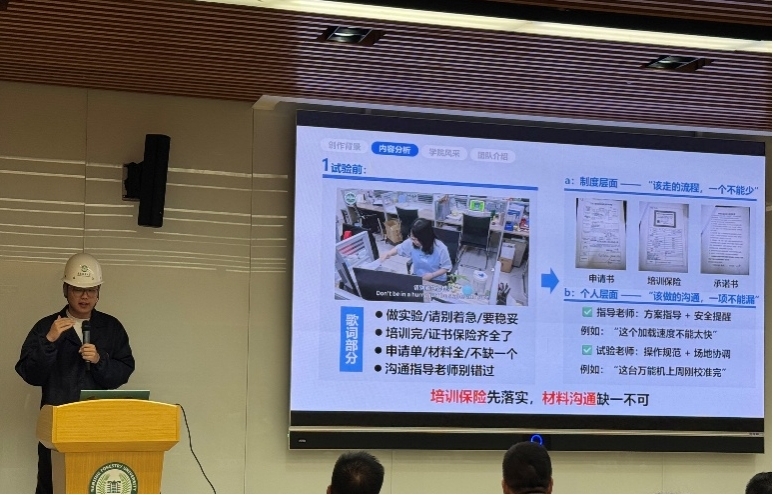 本次大赛由实验室与基地建设管理处、研究生工作部主办,旨在创新实验室安全教育形式。经初赛专业评审和决赛现场答辩两轮角逐,21点游戏规则报送的微视频从全校脱颖而出。该作品以“安全科普唱跳剧”形式,改编了经典歌曲,将实验室安全规范、培训准入、防护穿戴、规范操作、设备管理、场地清理、隐患检查、应急逃生等全流程要点融入歌词,通过实验室实景唱跳演绎,生动传递“安全第一、规范操作”的理念,创新了安全教育模式。在知识转化创新方面,将实验室安全七项核心规范(培训准入、防护穿戴等)融入歌词旋律,破解传统教育抽象化难题;在行为示范强化方面,通过实景演示护目镜佩戴、危化品操作等关键流程,建立可视化操作范本。通过参加此次比赛,21点游戏规则 主动将实验室安全教育模式由“被动灌输”跃升为“主动内化”,为构建“人人讲安全、处处守规程”的育人环境提供了创新范式。