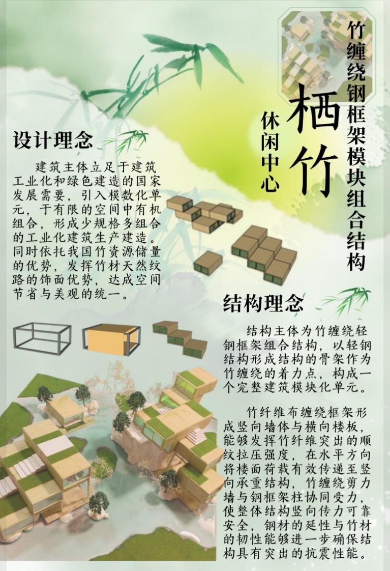 此外在林煜、张志杰老师的指导下,土木工程专业贺锡钧、蒋亚彤、林志炫3位同学组成的模型展示组作品“栖竹”在比赛中获得了江苏省二等奖的好成绩。