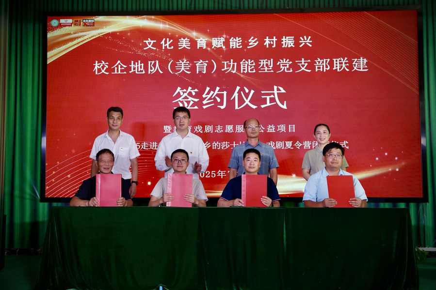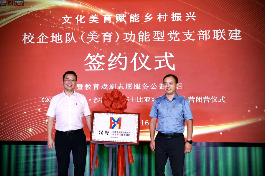 党建引领聚合力,美育赋能润童心。7月16日,我校21点游戏规则 、海澜集团、金寨县沙河乡、金寨县驻沙河乡乡村振兴工作队在金寨县沙河乡沙河实验学校(中学部)小会堂联合举办了校企地队(美育)功能型党支部联建签约暨教育戏剧志愿服务公益项目《2025·走进金寨·沙河乡的莎士比亚》戏剧夏令营结营仪式。安徽省六安市教育局副局长赵幸福、校党委常委、党委宣传部、党委统战部部长董博等出席活动。