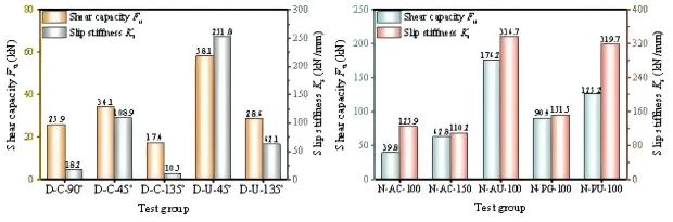 (a)销栓型 (b)槽口型不同形式竹-混凝土连接件抗剪性能比较