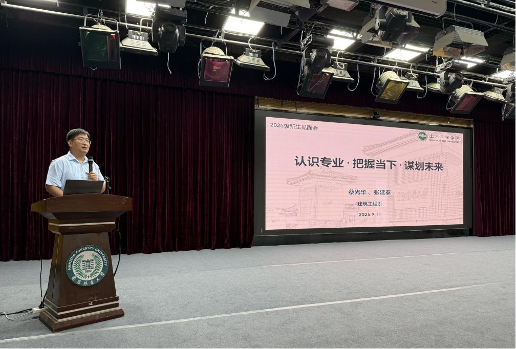 2020级校友、桥梁与隧道工程专业硕士研究生王毅飞以“在南林,你会遇见更好的自己”为题分享成长经历。他回顾了本科期间从“科研小白”到主持省级大创项目、从“社交恐惧”到带领团队开展红色历史调研的蜕变历程,强调“行动是破局的关键”。他寄语新生:“机遇偏爱有准备的头脑,南林的平台足够支撑每一个梦想,敢想敢做才能不负韶华。”