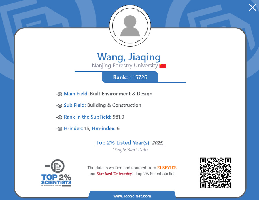 王家庆入选2025年度科学影响力排行榜--教授简介 //21dgamerule.net/wjq/main.htm