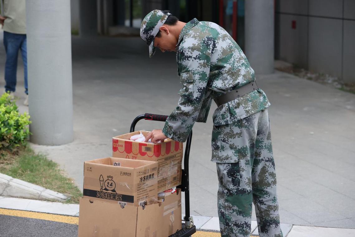 六连教官们和辅导员也为同学们送来解暑的冰奶茶和冰咖啡,表达出另一种特殊的关怀。