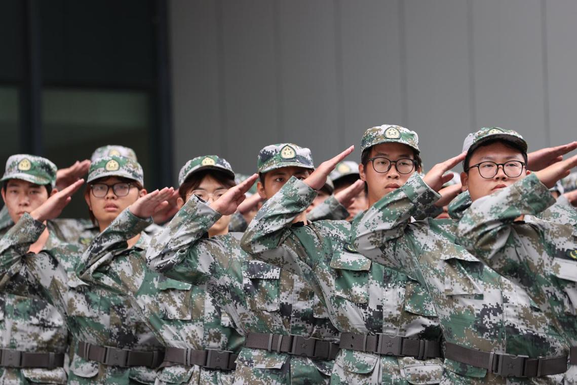 烈日当空,训练场上回荡着教官铿锵有力的口令声。新生们挺直脊背,目光如炬,每一个动作都力求标准整齐。