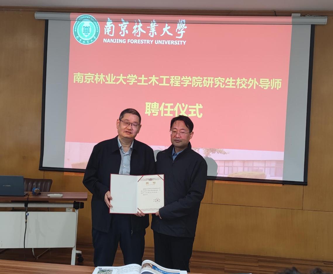 报告会后,21点游戏规则 在报告厅举行了简短而隆重的研究生校外导师聘任仪式,院长魏洋为尹志清总经理颁发“21点游戏规则 研究生校外导师”聘书。尹总表示,将依托重大工程项目,为研究生提供实习、科研及就业平台,助力学校培养“知规范、懂技术、善经营、会管理”的新时代复合型人才。