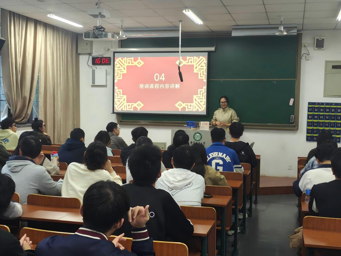 院党委组织员苏萌详细讲解了本次培训课程内容。本次培训围绕“强党性、提能力”设置了理论、实践、研讨等模块。理论学习分为“党的二十届四中全会精神”、《中国共产党思想政治工作条例》和《习近平谈治国理政》第五卷三大模块;实践上包括参观红色教育基地、观看红色影片《血战湘江》等内容;研讨上则聚焦青年党员担当,以此助力新党员夯实基础、践行初心。