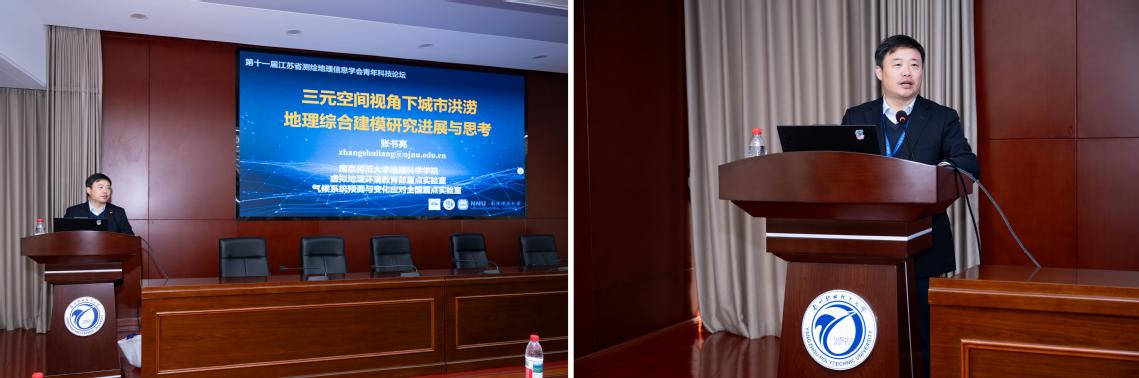 在主旨报告环节,南京师范大学张书亮教授作了题为“三元空间视角下城市洪涝地理综合建模的研究进展与思考”的报告;南京农业大学姜朋辉教授作了题为“立体遥感技术支持的空间智慧治理”的报告;中国航空器拥有者及自动驾驶员协会常务理事唐荣宽博士作了题为“低空与测绘设施融入城市更新项目的路径探索”的报告。