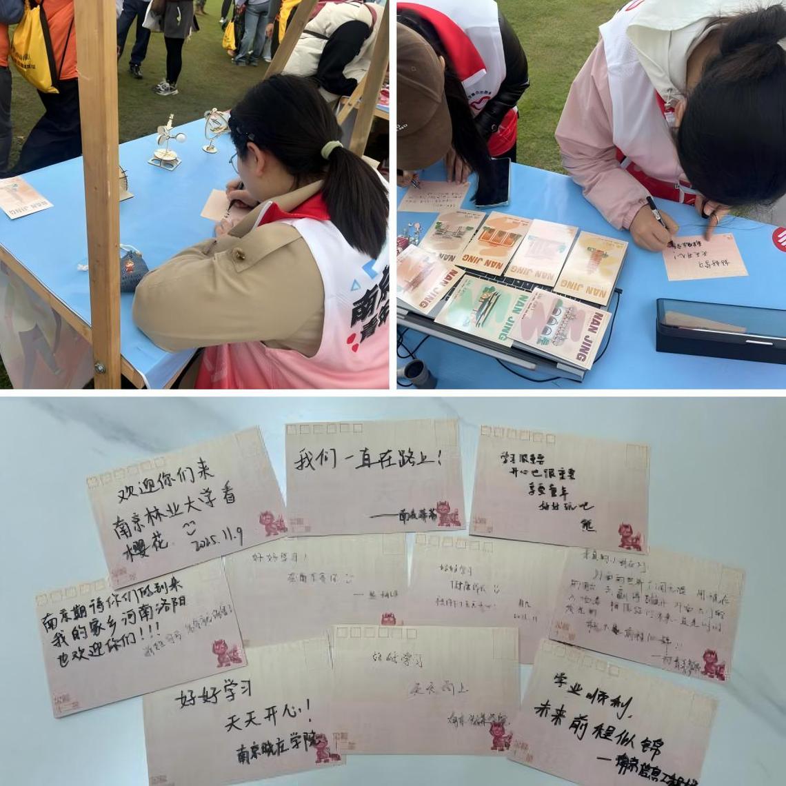 在互动环节,志愿者特别发起了一项主题为“请写下一句话,请留下一幅画”的公益活动,鼓励青少年、小朋友们在具有南京特色的“南京十二景”明信片上,为即将前往的支教地孩子们留下祝福或介绍南京的美食和景色。参加活动的孩子们积极投入,从幼儿园的小朋友到初中生,有的用稚嫩的画笔画出花朵,有的描绘南京地标,还有的写下一句句真诚的期盼:“期待有机会你们来南京玩!”这些温暖的声音和画面,通过小小的明信片传递着南京的爱。志愿者们建议孩子们留下他们的姓名和学校,希望这份署名的祝福能够顺利地送达支教地孩子们的手中。
