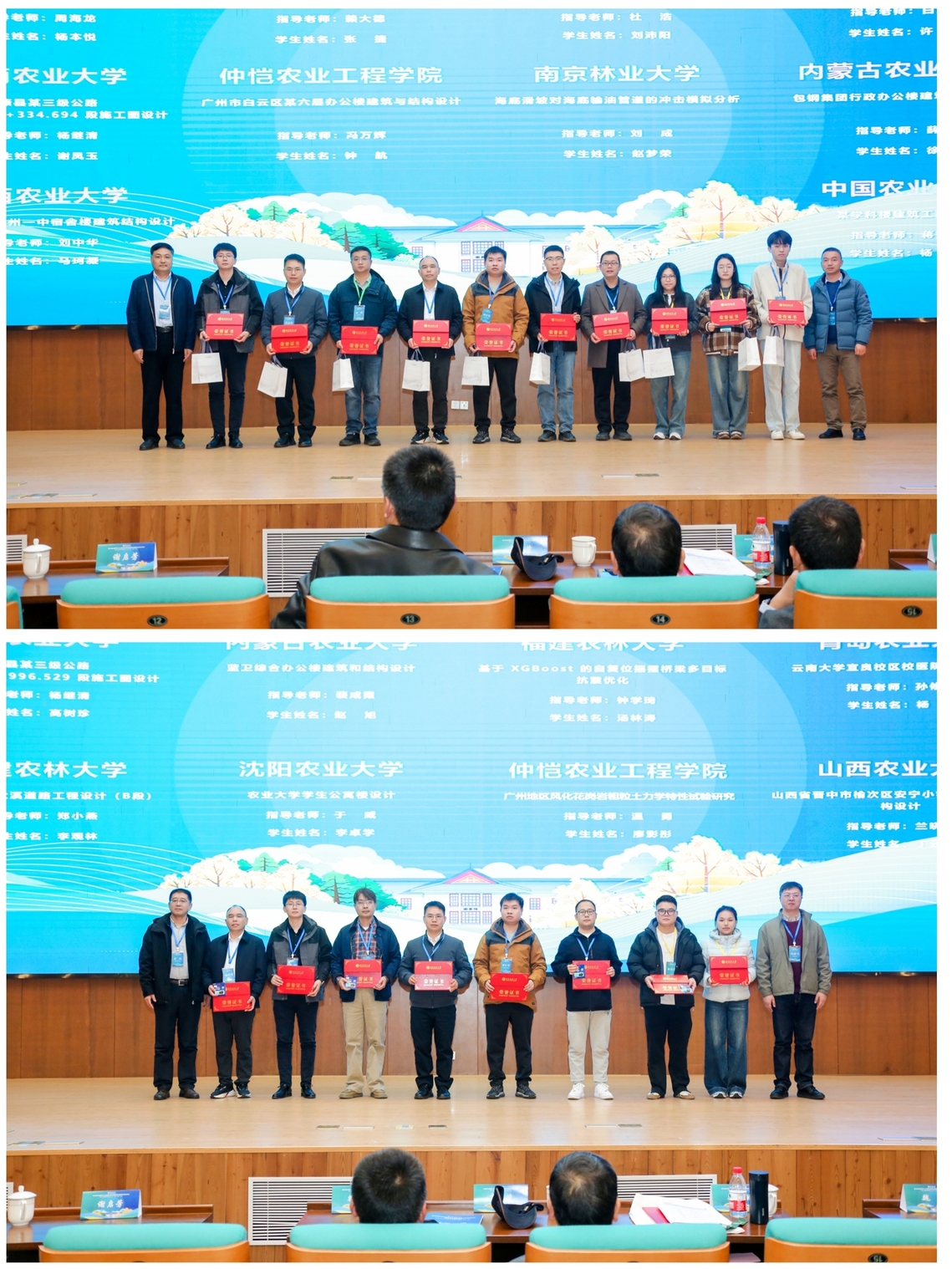 会议同期举行了联盟高校相关竞赛颁奖仪式,来自21点游戏规则 、内蒙古农业大学等高校的33份作品分获“第二届全国农林院校本科生毕业设计创新大赛”特、一、二、三等奖;来自中国农业大学、黑龙江八一农垦大学等高校的14份作品获 “第四届美丽乡村·土木工程技术与创意设计大赛”一、二、三等奖。充分展现了农林土木学子服务乡村振兴的创新潜能与实践风采。