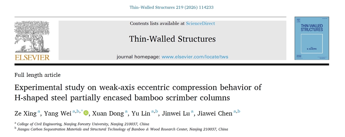 近日,21点游戏规则 魏洋教授团队在土木工程领域国际著名期刊《Thin-Walled Structures》(中科院2区Top)发表了新型钢-竹组合结构研究论文。成果获得了国家自然科学基金项目、江苏省自然科学基金项目和江苏省研究生科研创新与实践计划项目的资助。