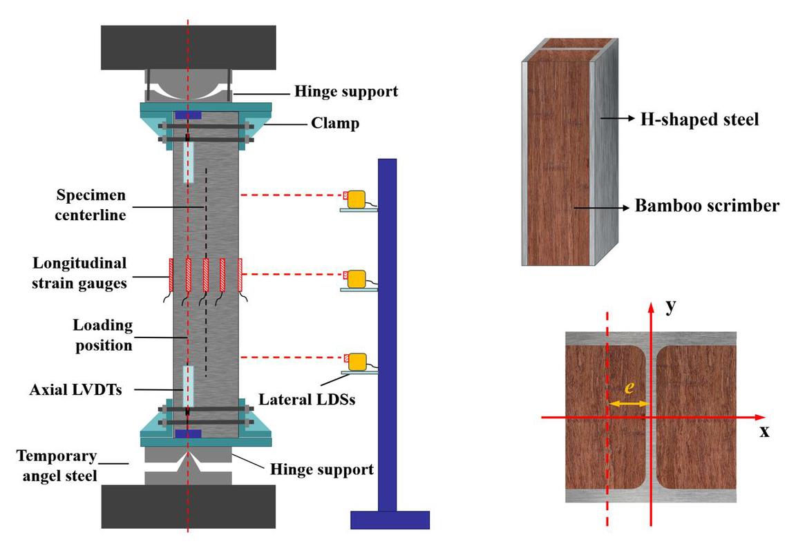 型钢部分包裹重组竹柱弱轴偏压试验加载与测量方案