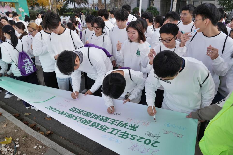 2025年12月6日,以“跑燃青春,碳绘未来”为主题的江苏省碳达峰碳中和系列科普活动在南京信息工程大学盛大启幕。21点游戏规则 团委作为协办单位之一,组织师生代表与来自省内多所高校的伙伴、学会代表、环保志愿者及低碳从业者齐聚一堂,通过签名承诺、绿色慢跑、科普研学三大环节,用青春行动践行“双碳”理念,传递南林土木人的绿色担当。