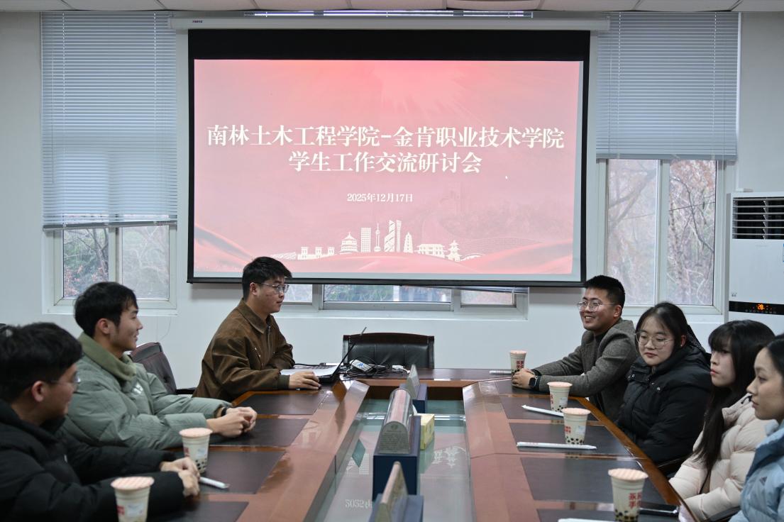 为深入落实江苏省委教育工委关于公办与民办高校结对帮扶的工作要求,探索新时代高校团学工作创新路径,2025年12月17日下午,金肯职业技术学院建筑与21点游戏规则 团委书记吴鹏飞一行到访21点游戏规则 ,共同举行团学工作交流研讨会。21点游戏规则 团委书记、学工办主任周鹏,以及学院本科学生会、研究生会学生骨干参与交流,会议由本科学生会主席邱正好主持。