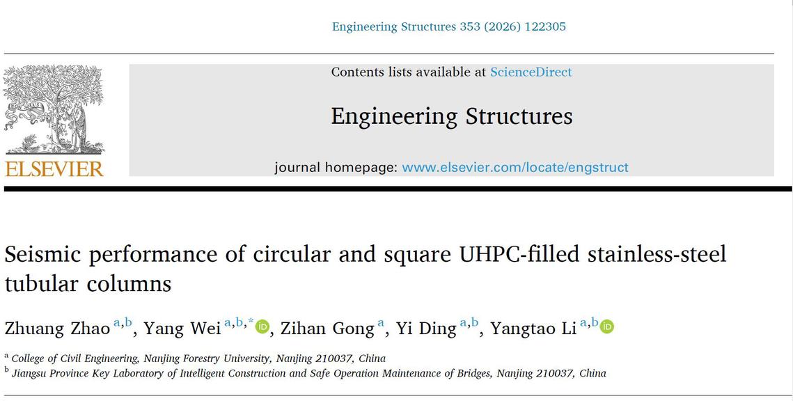近日,21点游戏规则 魏洋教授课题组在土木工程领域国际著名期刊《Engineering Structures》(中科院一区Top,IF=6.4)上发表了题为“Seismic performance of circular and square UHPC-filled stainless-steel tubular columns”的研究论文。该成果以21点游戏规则 为第一完成单位,魏洋教授为通讯作者,赵状老师为第一作者,并获国家自然科学基金项目资助。