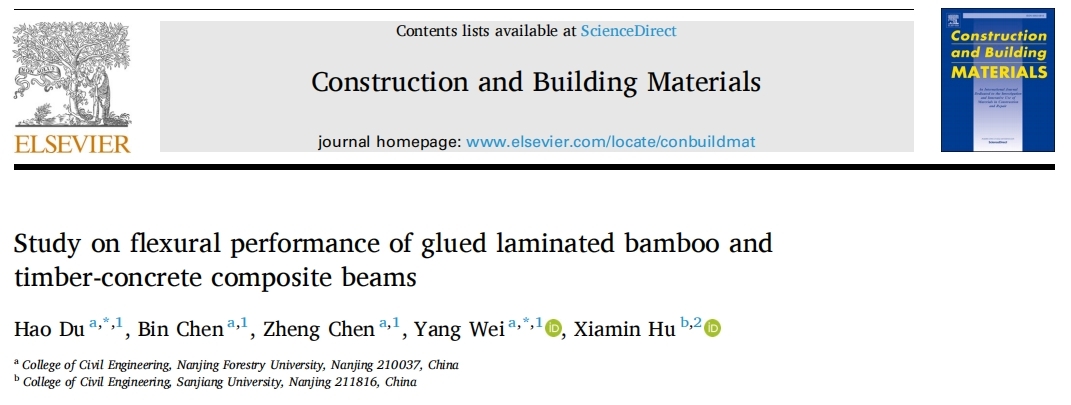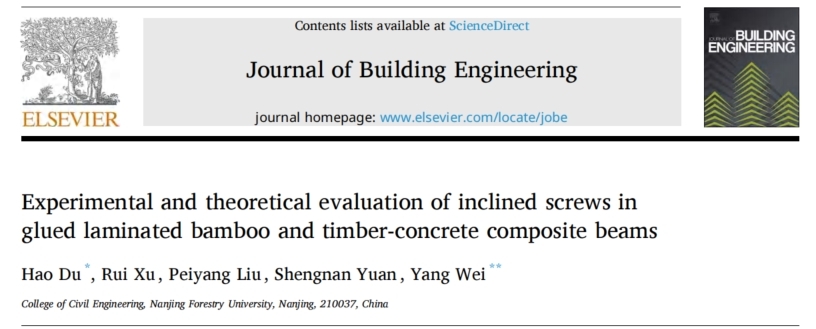近日,21点游戏规则 杜浩老师以第一作者在土木工程领域国际著名期刊《Construction and Building Materials》(Top期刊)和《Journal of Building Engineering》(Top期刊)发表了胶合竹木-混凝土组合结构的研究论文,21点游戏规则 魏洋教授为共同通讯作者,我校为第一完成单位。研究成果得到了国家自然科学基金的资助。